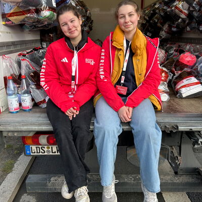 Um 07.30 Uhr begannen die LKW-Teams bei Sonnenschein, aber recht frischen Temperaturen, mit ihren Vorbereitungen auf den Ladeflächen der 13 Höffi‘s. Ab 08.00 Uhr konnten sie dann mit dem Verstauen der ca. 4500 Kleiderbeutel beginnen.